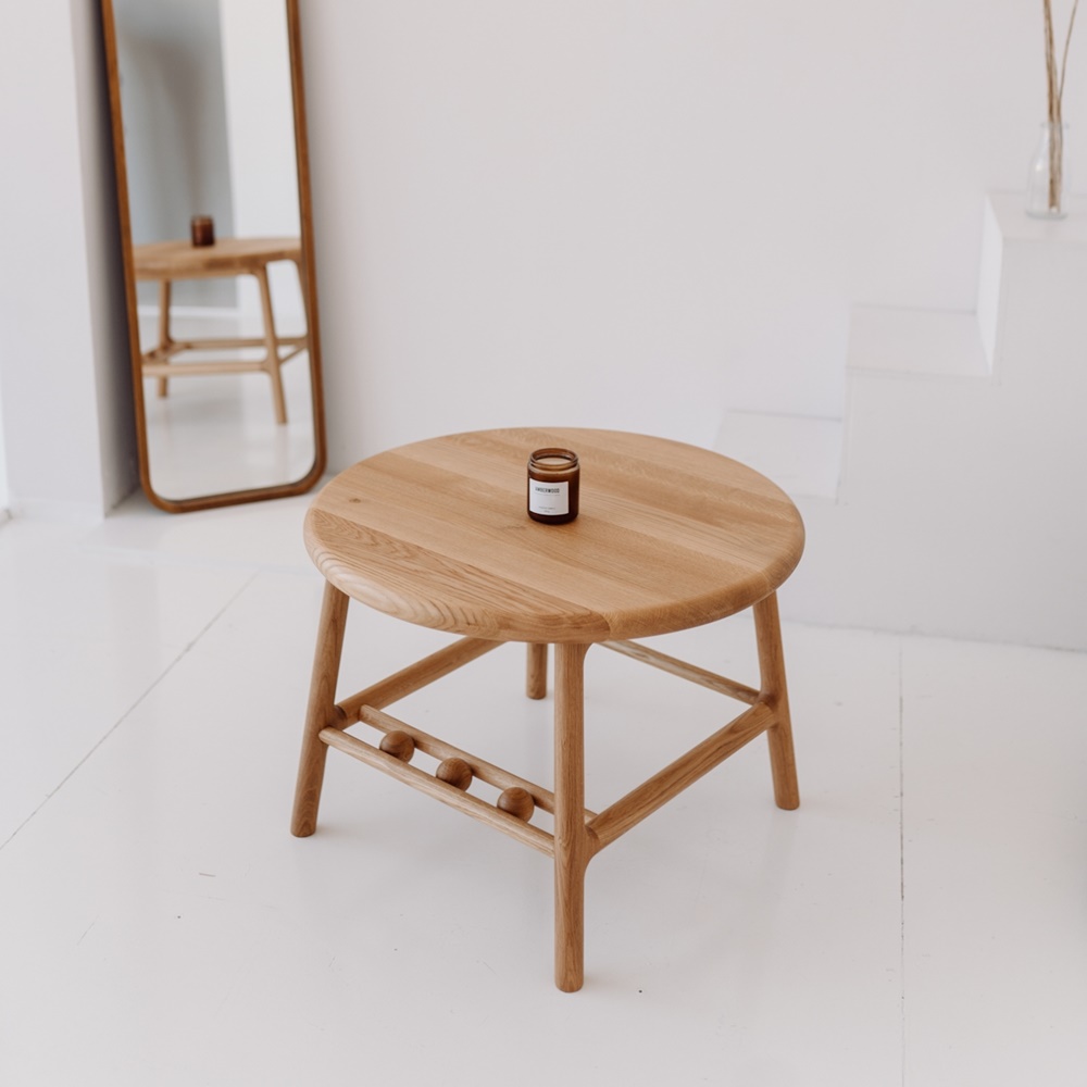 Okrągły stolik OLIO to mebel stworzony z myślą o codziennym użytkowaniu, ale bez kompromisów w kwestii estetyki. Łączy w sobie subtelność i wytrzymałość. Miękką linię zaokrąglonych krawędzi z twardym charakterem litego drewna dębowego. Inspirowana organicznymi kształtami i rytmem natury, wyróżnia się zaoblonymi krawędziami i toczonymi nogami. Jej prosta forma została przełamana subtelnym detalem – trzema toczonymi kulami, które stanowią znak rozpoznawczy kolekcji OLIO. Subtelność formy oraz możliwość personalizacji sprawiają, że jest idealnie odnajdzie się zarówno w salonie, jak i jadalni.